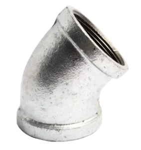 1.ข้องอเหล็กประปากัลวาไนซ์ 45° เป็นข้อต่อเกลียวที่เคลือบสังกะสีป้องกันสนิม ใช้สำหรับระบบท่อประปาเพื่อเปลี่ยนทิศทางการไหลของท่อให้ทำมุม45° ซึ่งช่วยลดแรงเสียดทานและหลบหลีกสิ่งกีดขวางได้อย่างมีประสิทธิภาพ