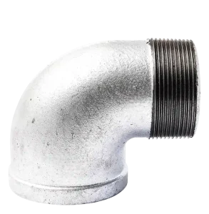 4.ข้องอเหล็กประปากัลวาไนซ์ 90° (ผ/ม) เป็นข้อต่อท่อที่ทำจากเหล็กชุบสังกะสี(กัลวาไนซ์) ใช้สำหรับเปลี่ยนทิศทางการเดินท่อให้หักมุมฉาก90° โดยมีปลายด้านหนึ่งเป็นเกลียวนอกและอีกด้านเป็นเกลียวในเพื่อให้สามารถเชื่อมต่อกับท่อหรือข้อต่ออื่นที่มีเกลียวตรงข้ามกันได้ทันที
